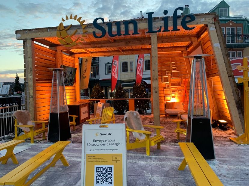 La terrasse Sun Life est une structure mobile accueillante, conçue pour ajouter une touche chaleureuse et conviviale aux événements. Facilement repérable de loin, elle invite les visiteurs à faire une pause et profiter d’un moment de détente. Que ce soit pour s’installer confortablement sur une chaise Adirondack ou un banc, se réchauffer près des foyers au gaz, ou savourer une boisson offerte par nos ambassadeurs de marque, chaque visite devient une expérience agréable et mémorable.